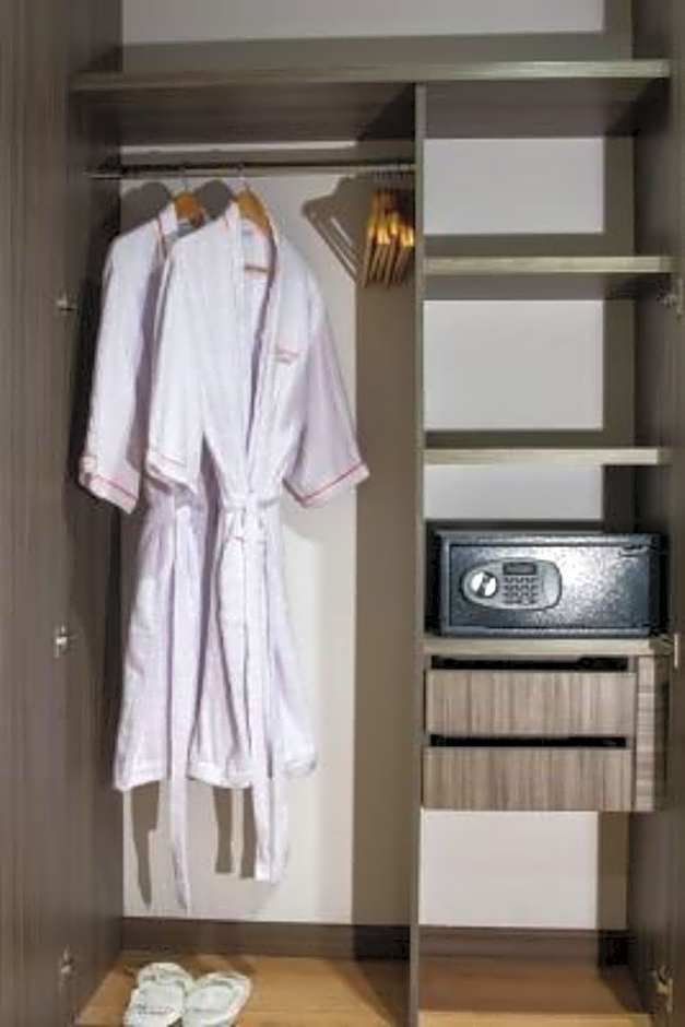 Featuring modern design, this room is air-conditioned. It includes a wardrobe, a flat-screen TV and a work desk.